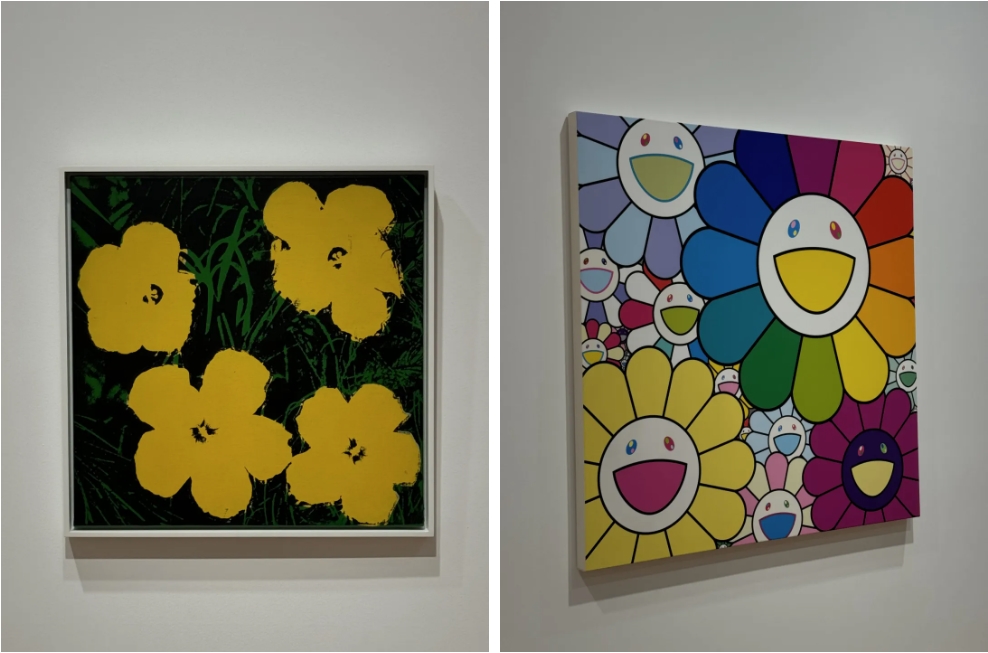 最让小编惊喜的是本展还陈列了一幅沃霍尔的《花》,高古轩特地将当代最知名的日本艺术家村上隆的同名作品放在一旁,不啻为一种别具一格的“琴瑟和鸣”。《花》可谓沃霍尔领军的波普艺术 Pop Art 的经典之作,他在《花》中舍弃传统的透视画法,将作品任意翻转各种方向都不会影响其呈现的效果。