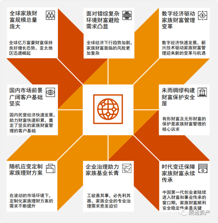 超高净值家族对于有形财富(金融资产、家族企业等)及无形财富(家族文化、家族成员人身健康等)的保护需求是家办工作的出发点。