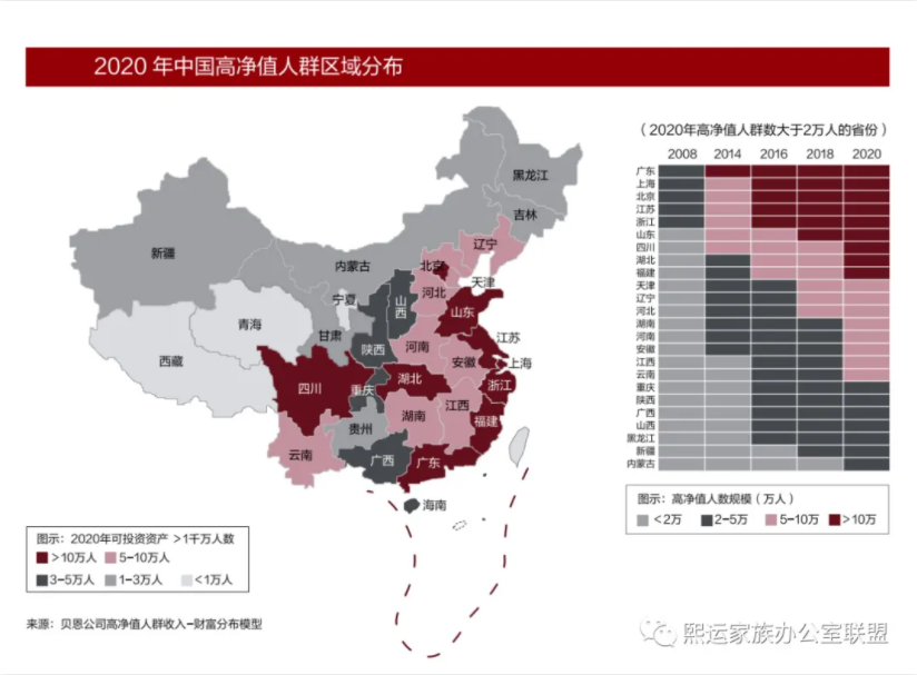 过去几年,新经济企业的崛起带来强劲的股权增值与创富效应,造就了大批新富人群,而其行业及相关产业链在北京、广东及上海、江苏和浙江等东南沿海省市的集中度较高。